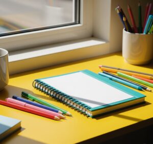 (n.) สมุด, สมุดบันทึก, สมุดแบบฝึกหัด (ที่ใช้สำหรับจด, เขียน, หรือวาด)